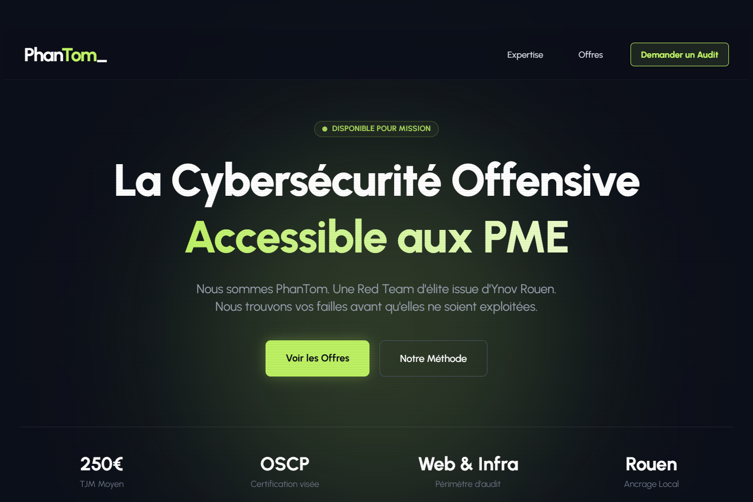 Identité visuelle et site corporate pour une agence de cybersécurité. Focus sur la conversion.